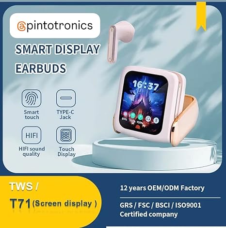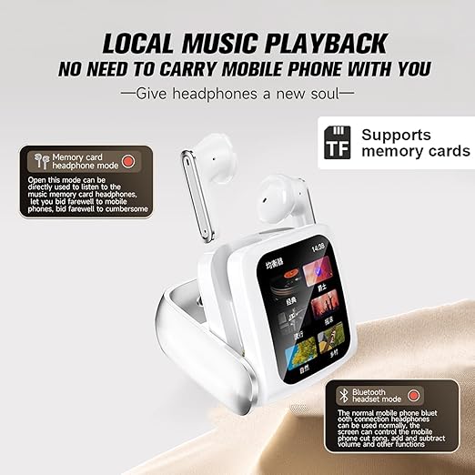 Touch screen Case: With the smart charging case, you can control headset volume, EQ mode, and more than 10 functions such as time, battery level, and set alarm from the screen of the case, without using your phone. Enjoy a truly intelligent experience