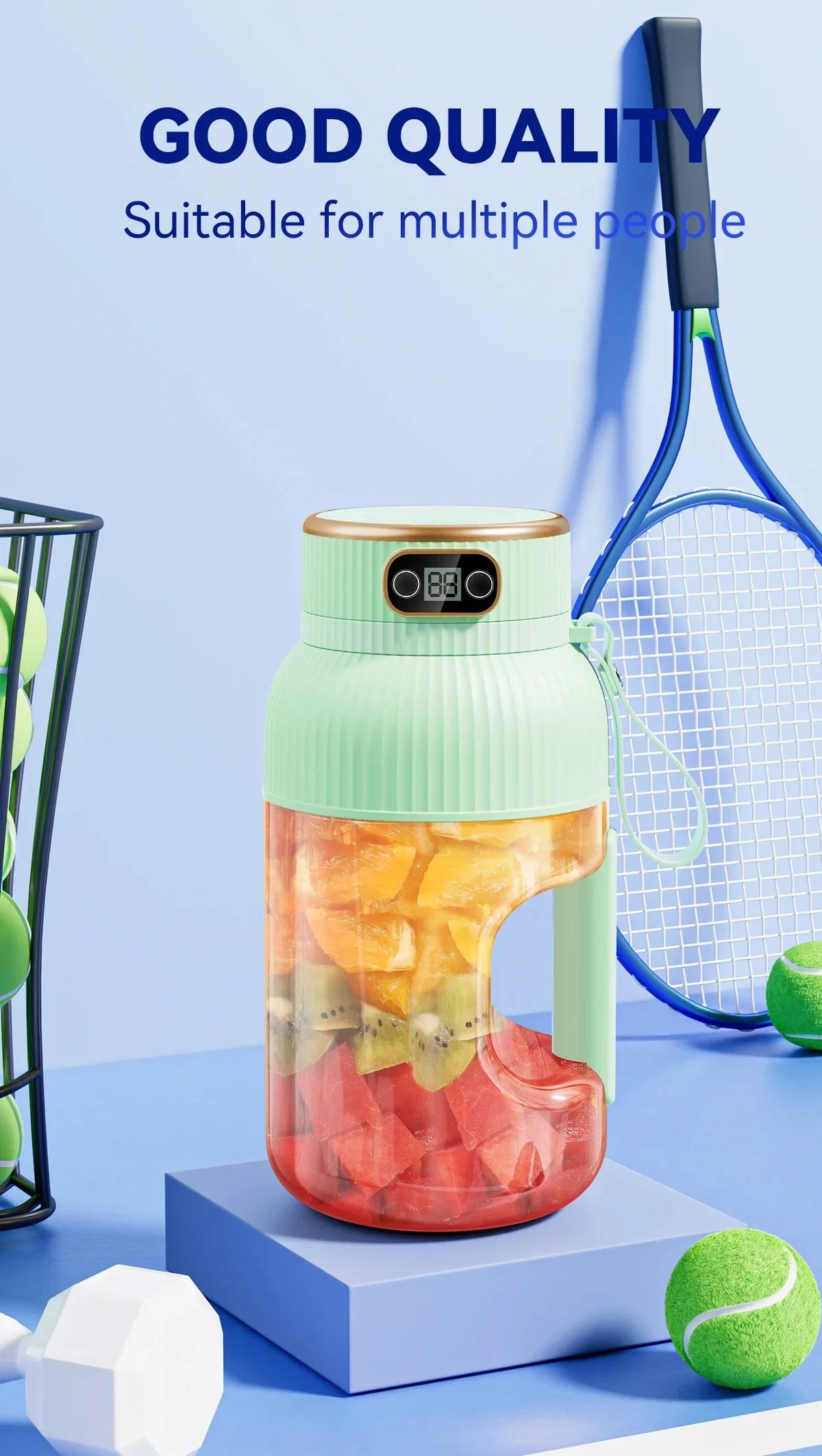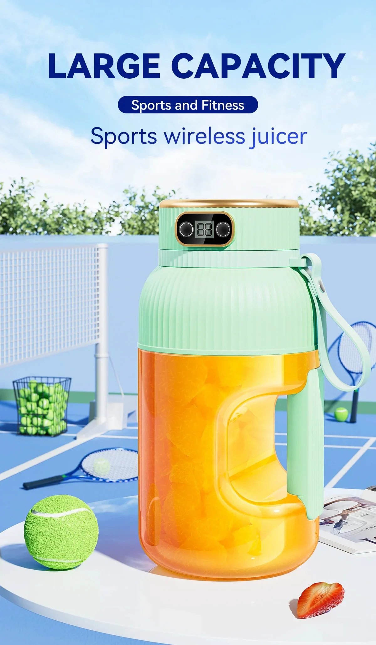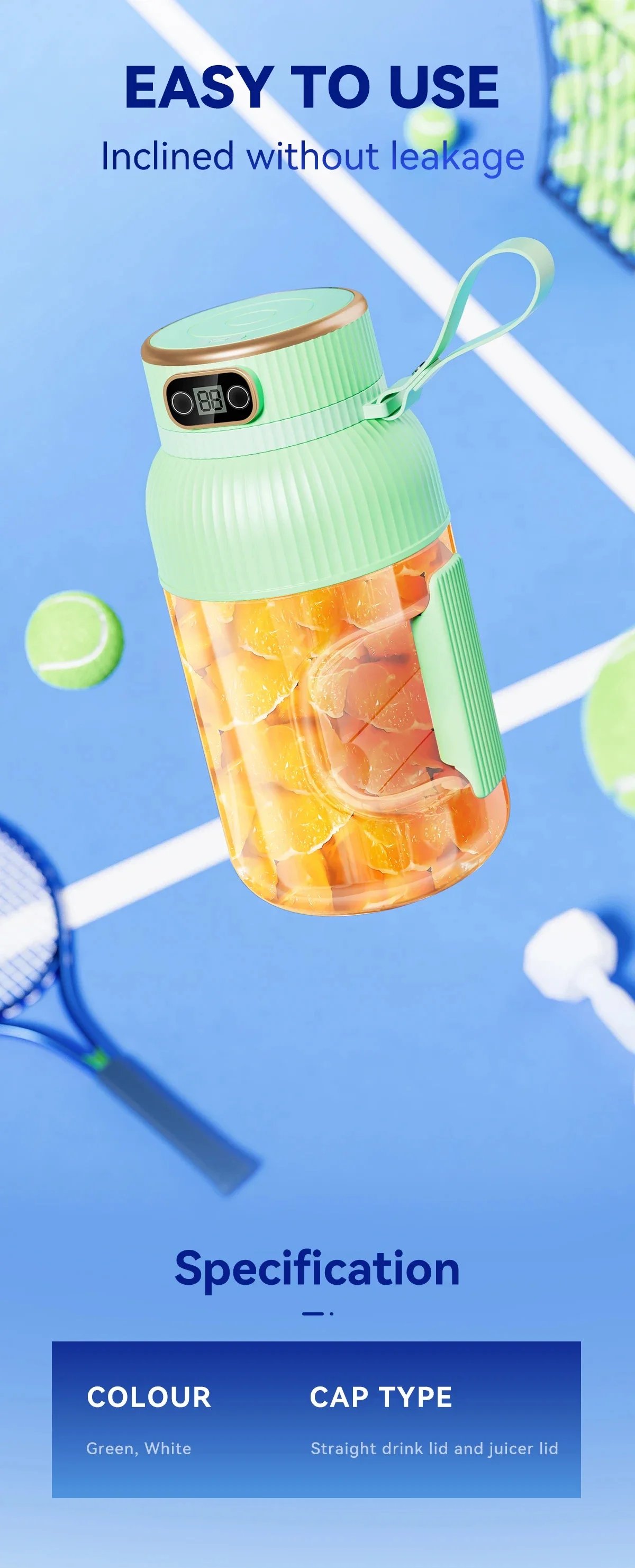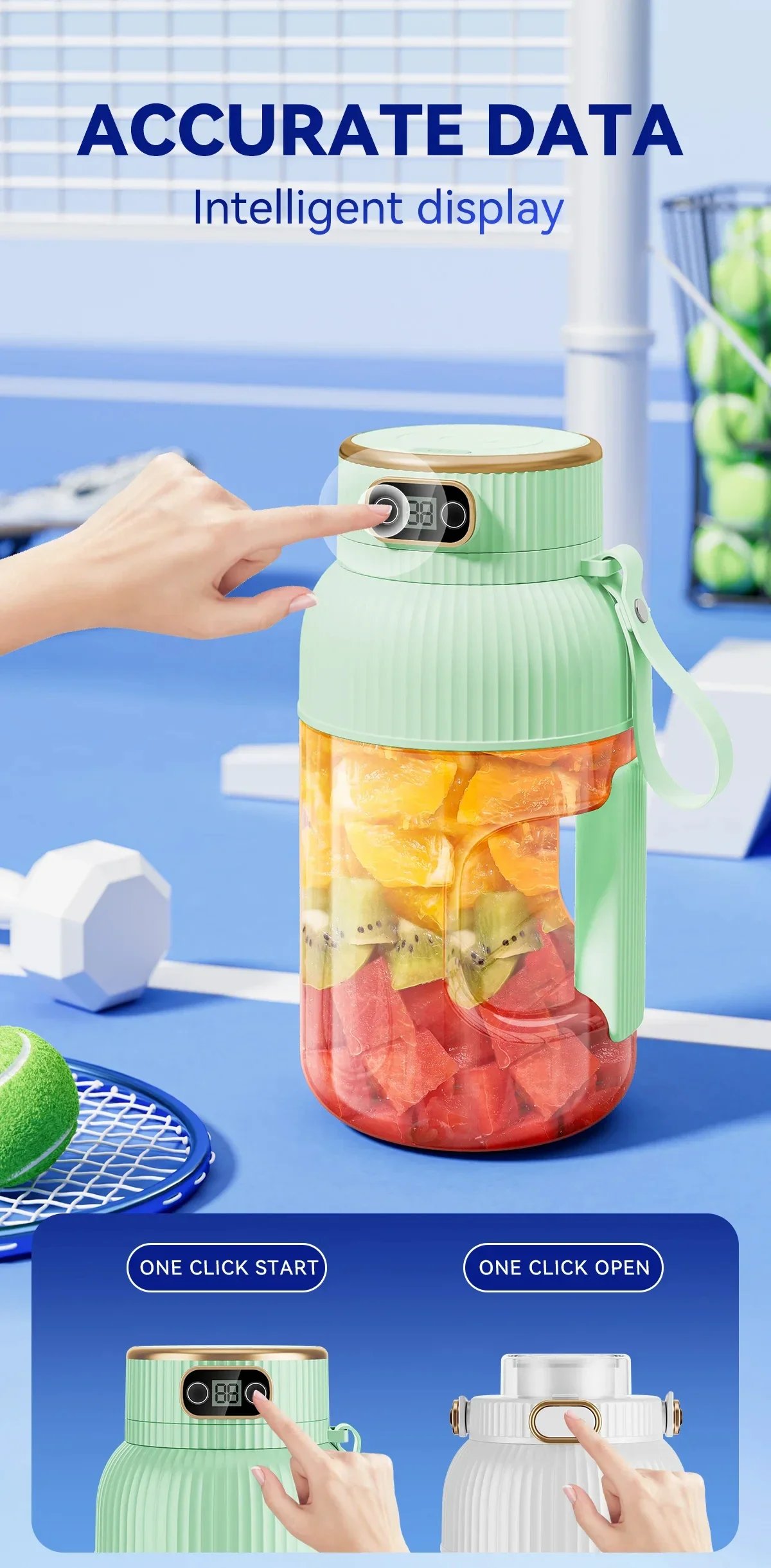 Smart Digital Display: With an easy-to-read digital display, you can easily monitor the blending time and battery level. Simple one-touch operation makes juicing a breeze!