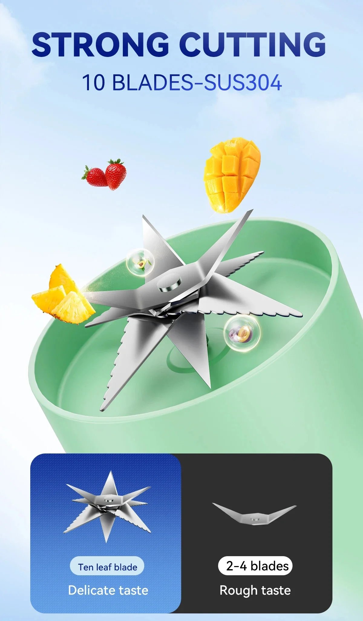 Ten-Blade Blade: This juicer comes with a powerful ten-blade blade that ensures a delicate and smooth taste, blending fruits and vegetables perfectly for a refreshing experience.