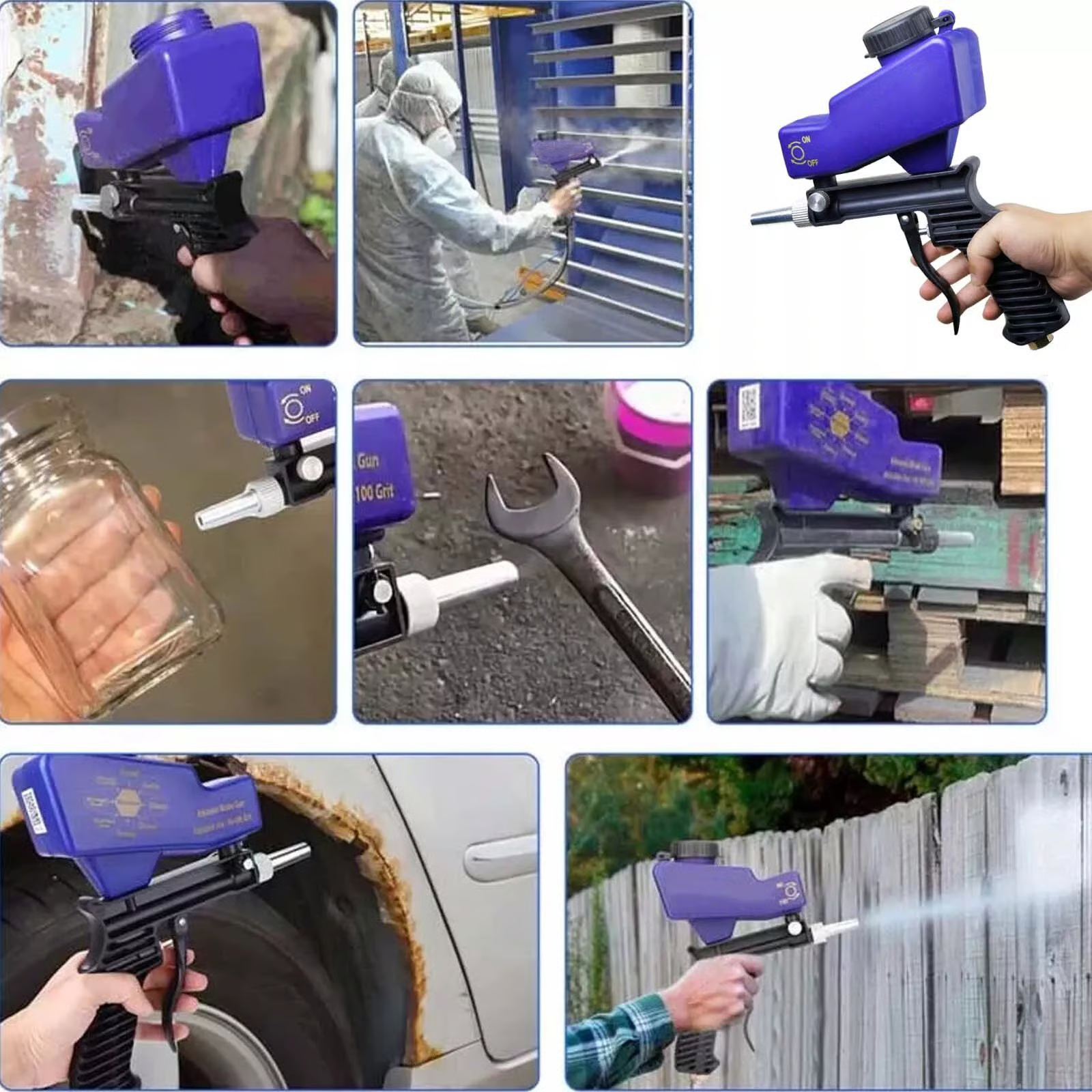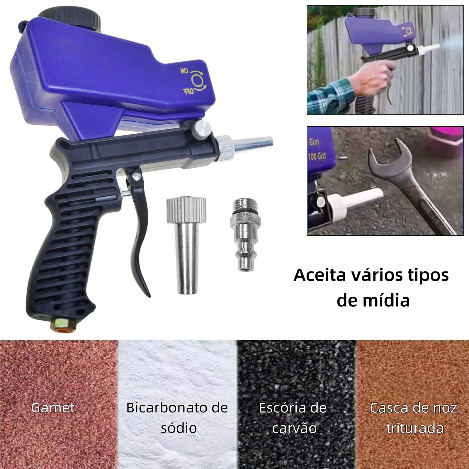 Vários tipos de meios abrasivos: está disponível com vários tipos de meios abrasivos, como corindo marrom, areia, vidro, carboneto de silicone, abrasivos de óxido de alumínio, pedra-pomes, soda ou cascas finas de nozes, dependendo dos requisitos de aplicação do seu projeto.
