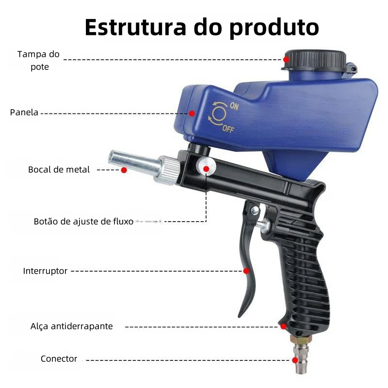 Alto desempenho: Esse sistema pneumático fornece areia uniforme e rápida para polimento, remoção de ferrugem e detalhes sem danificar a superfície da peça de trabalho. Essa alta pressão pneumática ajuda você a realizar seu trabalho de forma rápida e fácil em comparação com os trabalhos de pulverização manual convencionais.