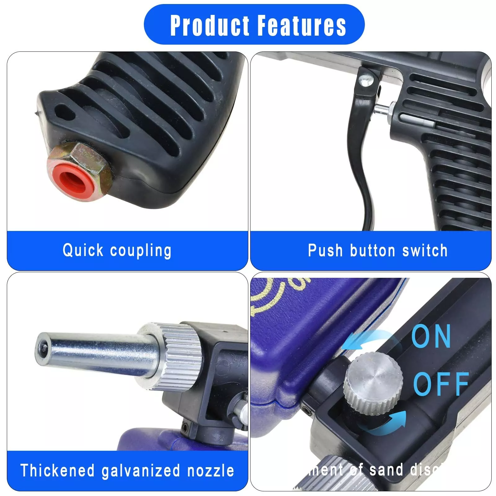 Design ajustável: o interruptor de ajuste de fluxo pode ser ajustado manualmente à taxa de fluxo de jateamento de areia para controlar com precisão a quantidade de jateamento de areia para atender aos requisitos de diferentes cenários. Isso também evita o desperdício de mídia.
