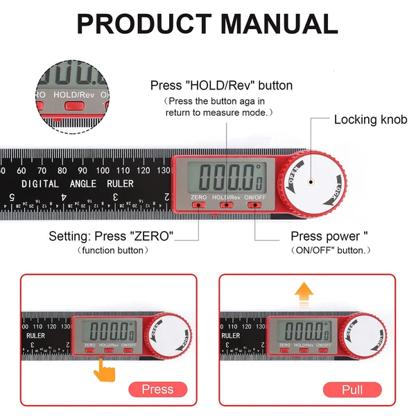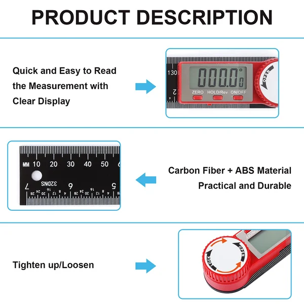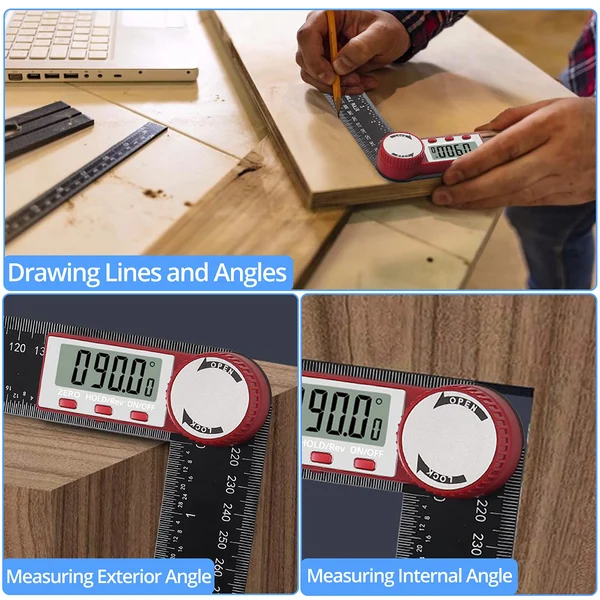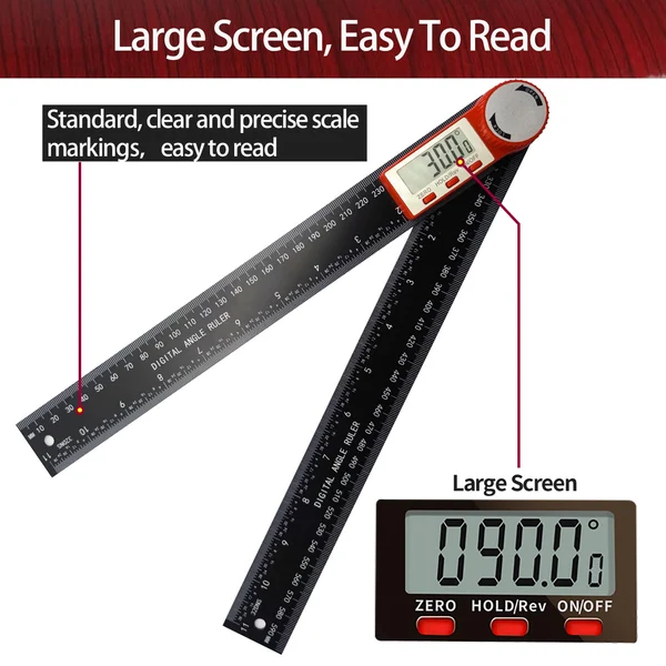 The digital LCD screen of the digital display goniometer displays data in real time, making the readings more intuitive and convenient. The laser-etched scale is clear and not easy to wear.ideal for use in woodworking, construction, or drawing.