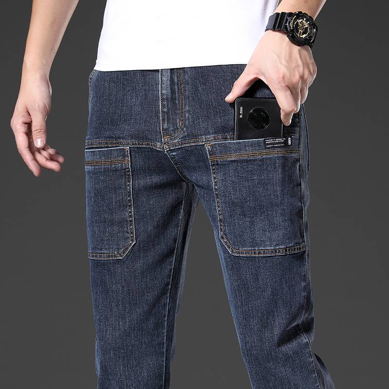 These stylish multi-pocket stretch jeans are perfect for any man looking for comfort and style. The jeans are made from a cotton and spandex blend for comfort and durability. The jeans feature a classic six-pocket design with two back pockets, two front pockets and two side pockets. The waistband is adjustable for a better fit and the legs are tapered for a modern look.
