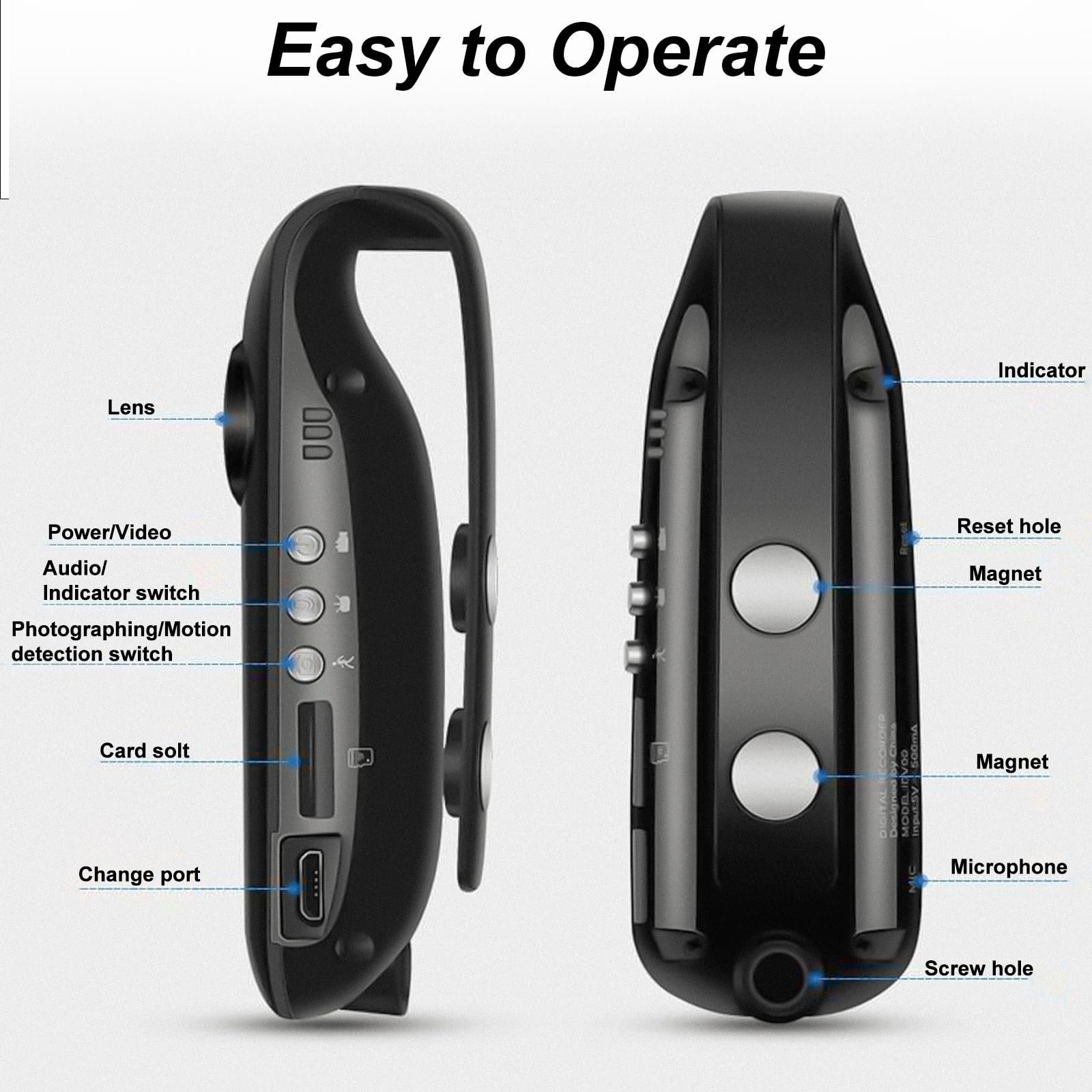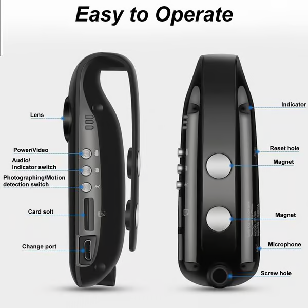 【Magnet Back Clip for Your Convenient Recording】Our personal body cam is lightweight and portable, you can easily pin the camera to your clothes or clip it to your backpack when you are exercising. Meanwhile the magnetic design can be attached to the iron shelf/fridge/furniture, freeing up your hands and making it more convenient to record than cameras that only have a clip closure.