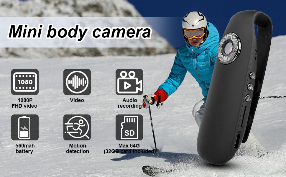 【1080P FHD Mini Body Camera】This wearable body camera with video recording delivers 1920 * 1080P” at 30 frames per second to provide you with a smooth visual experience. This portable camera captures sharper details and a wider field of view during video recording. It can be used in meetings, classrooms and other scenarios.