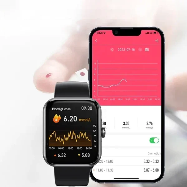 Painless blood glucose monitoring, heart rate, blood pressure, blood oxygen monitoring, health monitoring smartwatch